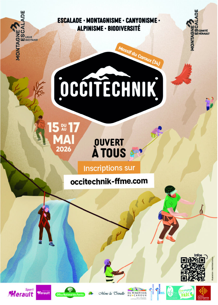 La Ligue FFME Occitanie et le Comité Territorial FFME de l’Hérault donnent rendez-vous du 15 au 17 mai 2026 pour une nouvelle édition d’Occitechnik, le stage multi-activités qui met à l’honneur l’escalade, l’alpinisme, le canyonisme et le montagnisme.