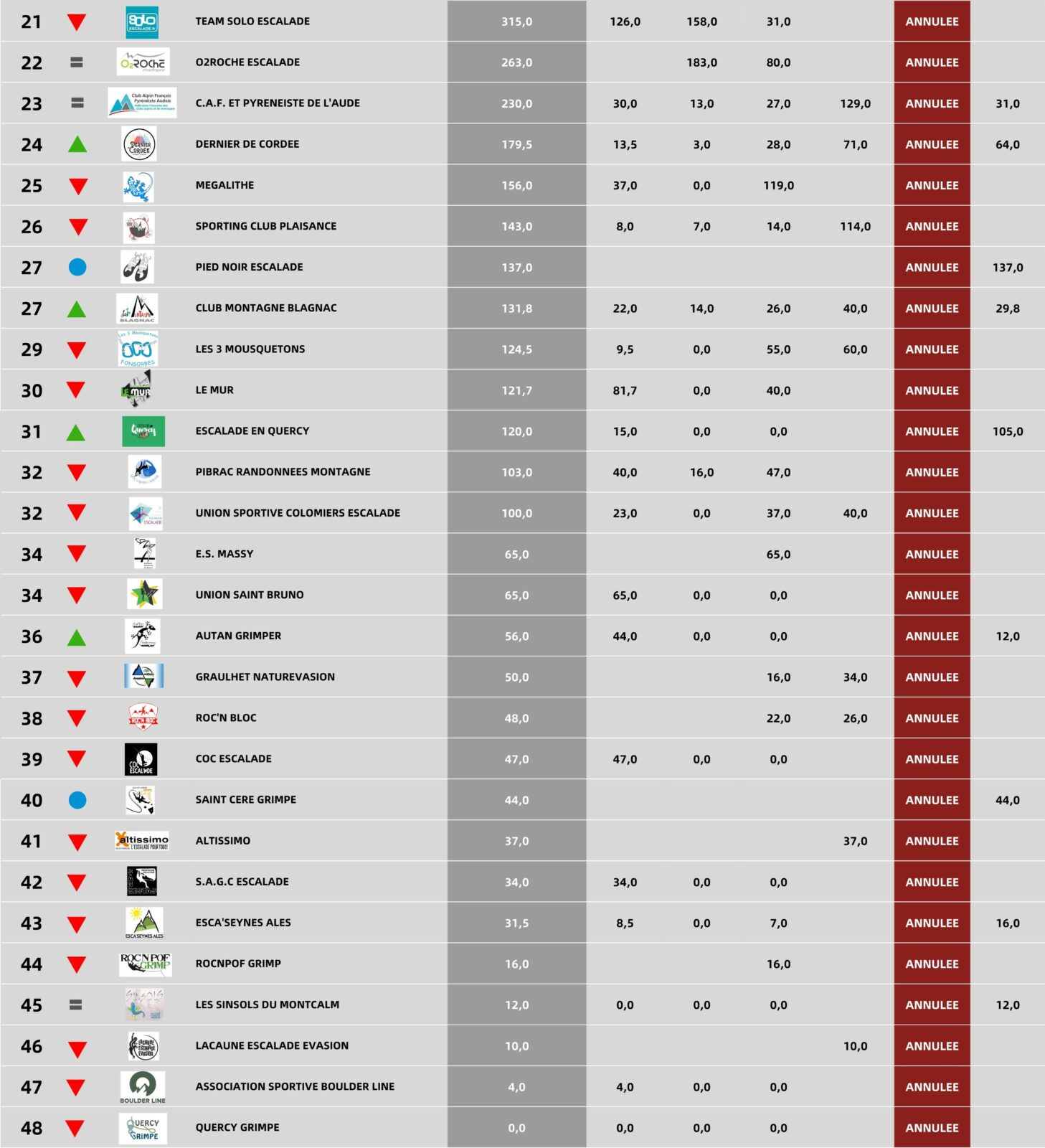 ➡️Classement individuel 2023-2024 \ Classement par équipe 2023-2024 (partie 1) \ Classement par équipe 2023-2024 (partie 2)